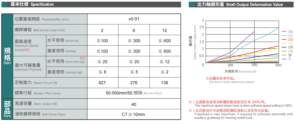 水平安装荷重 Load In Horizontal Installation